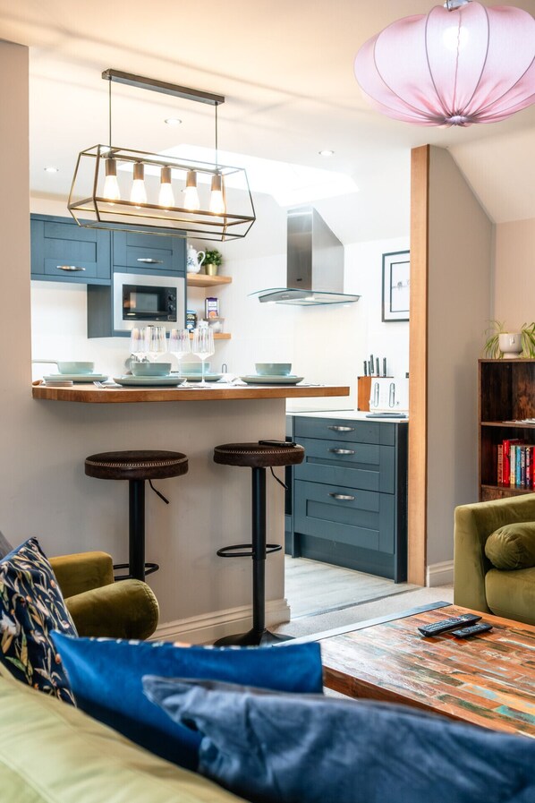 Inside, the barn offers a bright and inviting living area, ideal for unwinding after a day out, along with a well-equipped kitchen that makes it easy to enjoy meals at home. The property features two thoughtfully arranged bedrooms: a comfortable double bedroom and a twin room, making it a flexible choice for a variety of stays. A modern bathroom completes the home, all set within a cleverly designed layout that makes the most of the space.