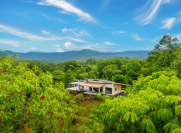 Escape to this serene 2-bedroom, each bedroom with its own private full-bathroom Nestled in utmost privacy amid rainforest vistas Unwind by your private pool Spacious living areas Well-equipped kitchen ideal for culinary adventures Floor-to-ceiling windows invite jungle breezes and stunning views Modern, airy design with A/C throughout expansive patios, and nature at your doorstep Perfect for couples or families craving peace Great location near pristine beaches and famous dining options