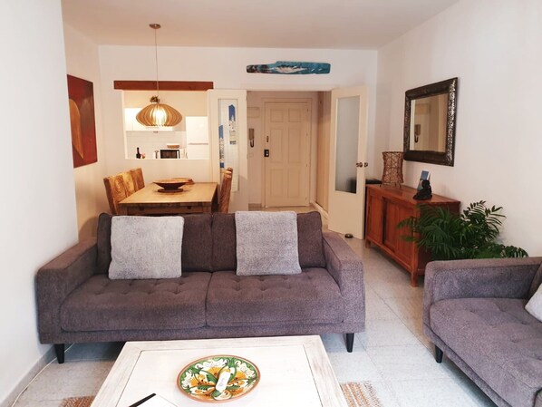 Las Tres Piedras heeft drie ruime slaapkamers, met veel bergruimte. Een tweeling en twee tweepersoonskamers met beddengoed van goede kwaliteit, matrassen en kussens. Elk heeft zijn eigen spiegel, kaptafel en haarverven. Een moderne badkamer en een aparte doucheruimte. Het heeft ook een ruime eethoek met tafels en stoelen voor zes personen. De keuken is groot, modern, schoon en zeer goed uitgerust met magnetron en vaatwasser. Het appartement heeft een groot gemeenschappelijk dakterras, met vrij uitzicht over de Atlantische Oceaan zover het oog reikt. U bent vrij om meubels naar dit gebied te brengen om te ontspannen, maar er zijn twee privébalkons met uitzicht op het strand en het park, beide verbonden met het appartement, en hebben tuinmeubilair om buiten te dineren.