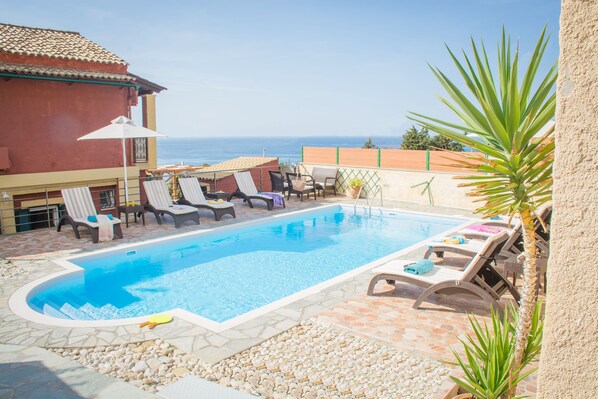 Villa met twee onafhankelijke appartementen (i. E. Uno-begane grond; Due-Firstfloor), die onafhankelijk van elkaar kunnen worden gehuurd (voor vijf personen elk) en ook complete, afhankelijk van de hoeveelheid mensen per gezin (normaal voor meer dan 8 personen als geheel),