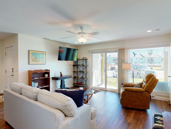 Book your next vacation at this newly remodeled nautical getaway first-floor condo which sits across the street from the shared pool, hot tub, and grilling area. Aransas Harbors is located close to downtown. The Civic Center, City marina, Roberts Point Park, restaurants, and a day spa are within walking distance, and the beach and Birding Center are both short drives away.
