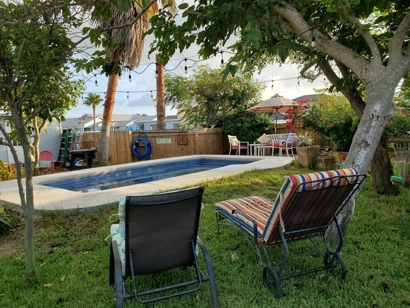 We will come back to the property. We had the shared pool to ourselves up until the last day of our stay. If bringing dogs, the yard is shared with Black Dog house, this posed problem the last day with the new arrivals as they tied their dogs up in the shared yard, but we loved the area, the house has every amenity you would need, it's close to the beach and all Pt A has to offer!