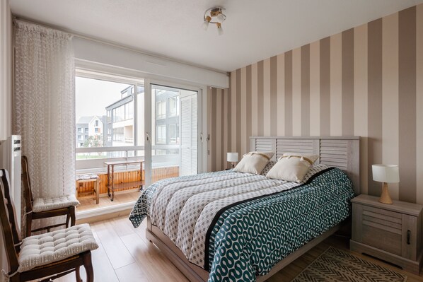 In Courseulles-sur-Mer, less than a kilometre from the beach, this charming 50 m² flat with a harbour view can accommodate up to 4 people. Located on the 2nd floor (with lift), it comprises a 30 m² living room, a fitted kitchen, a good-sized bedroom and a bathroom.