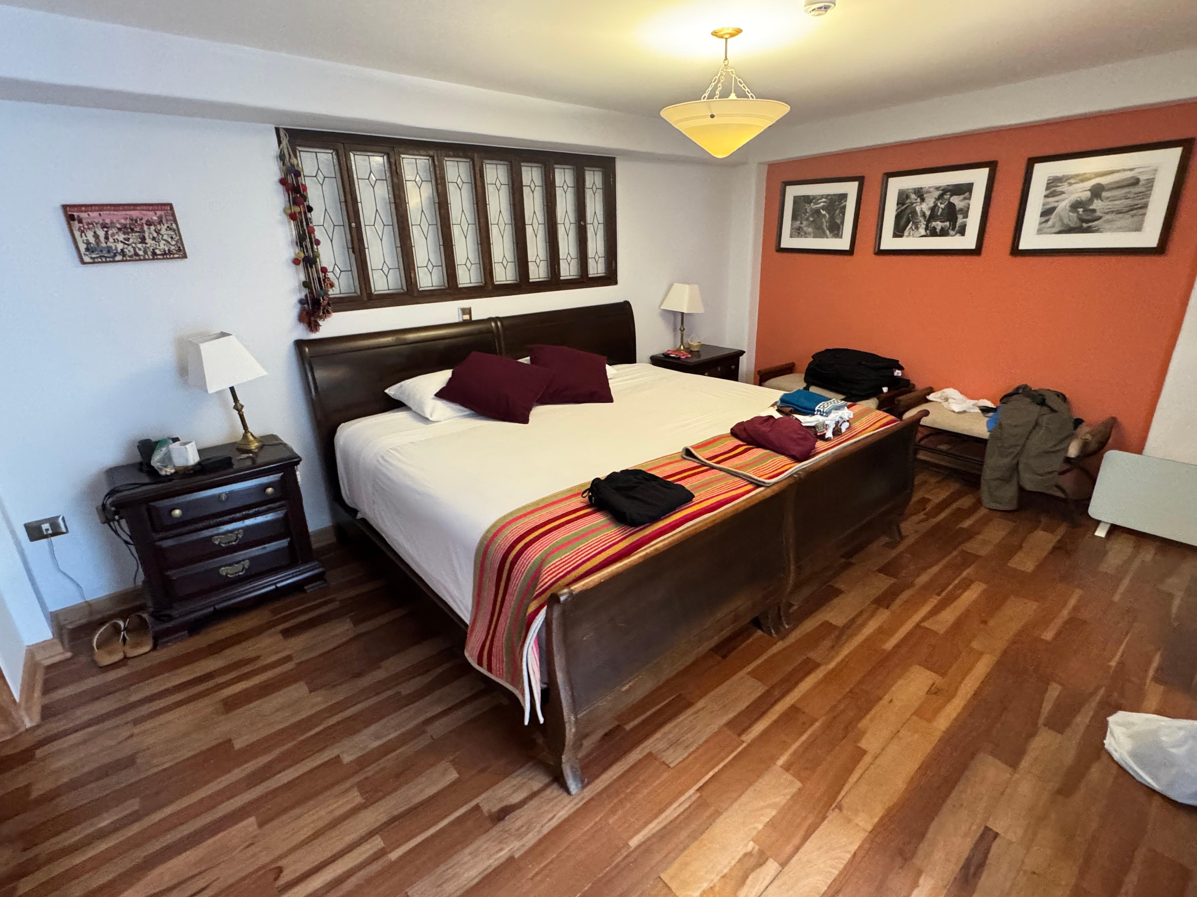 My stay. Here was absolutely wonderful. The staff the cleanliness. The Location to the Plaza Armas. I stayed in a superior room which has a large king bed TVs with Wi-Fi. Beautiful bathroom. I read of the reviews. Almost all of them were really good. But Summer, one stars because it is on a little alley. That has some bars that apparently there’s noisy at night. I didn’t worry about that on the review because I often put sleep music on and have a little speaker. I will absolutely stay here. Next time I’m in Cusco.