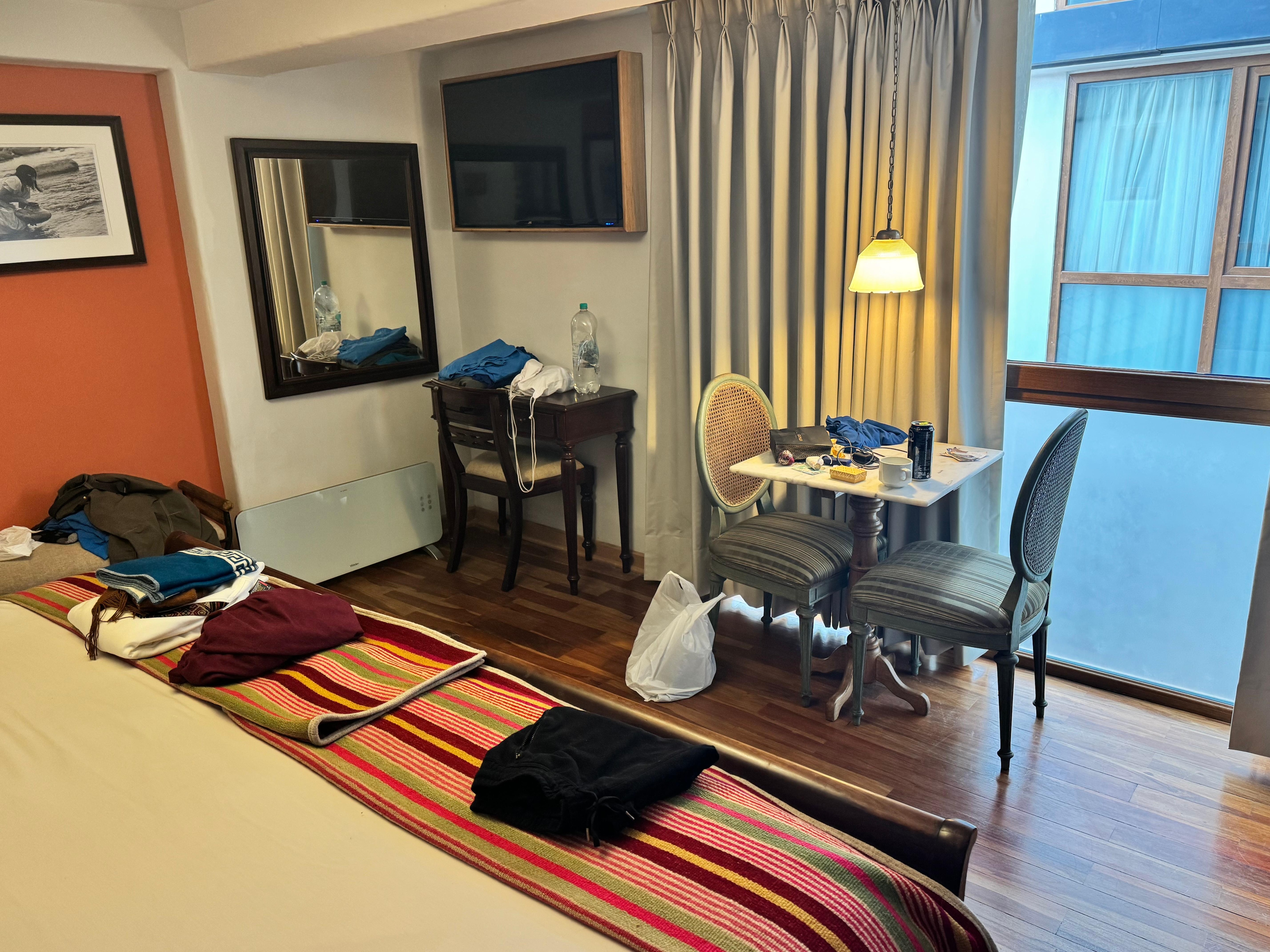 Hotel artinka was beautifully set out, rooms were simple and well decorated. Bathroom big and lots of hot water and good pressure. Hotel is centrally located just off Plaza de Armas. Sadly the noise of the discotecas every night made our stay much less enjoyable. The sound is not light it is solid, continuous and loud. We both slept with loop ear plugs and could still hear the party music. The music didn’t end until well into the early hours of the morning, some days until 4am. This is not a weekend only problem, it is a noise problem for anyone after relaxing sleep after big days of hiking, adventures and simple to recoup on your travels. For the noise alone I give this hotel 1 star, if sound proofing could be coordinated then it would be 4 stars.