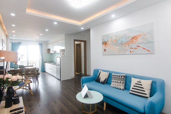 Dit strandappartement met 2 slaapkamers heeft een adembenemend weids uitzicht over het landschap van Da Nang van Dragon Bridge naar My Khe Beach. De beste LOCATIE geven, 1 stap vooruit naar het strand, dicht bij alle bezienswaardigheden, restaurants, supermarkten en pubs met gemakkelijke toegang tot het openbaar vervoer. Stijlvolle en ruime ruimte, compleet met alle essentiële keuken, beddengoed, 2 badkamers, wassen en wifi nodig. Volledig gepolijste vloerplanken in de grote woon- en eetkamer met een ontspannend luchtig balkon ^^