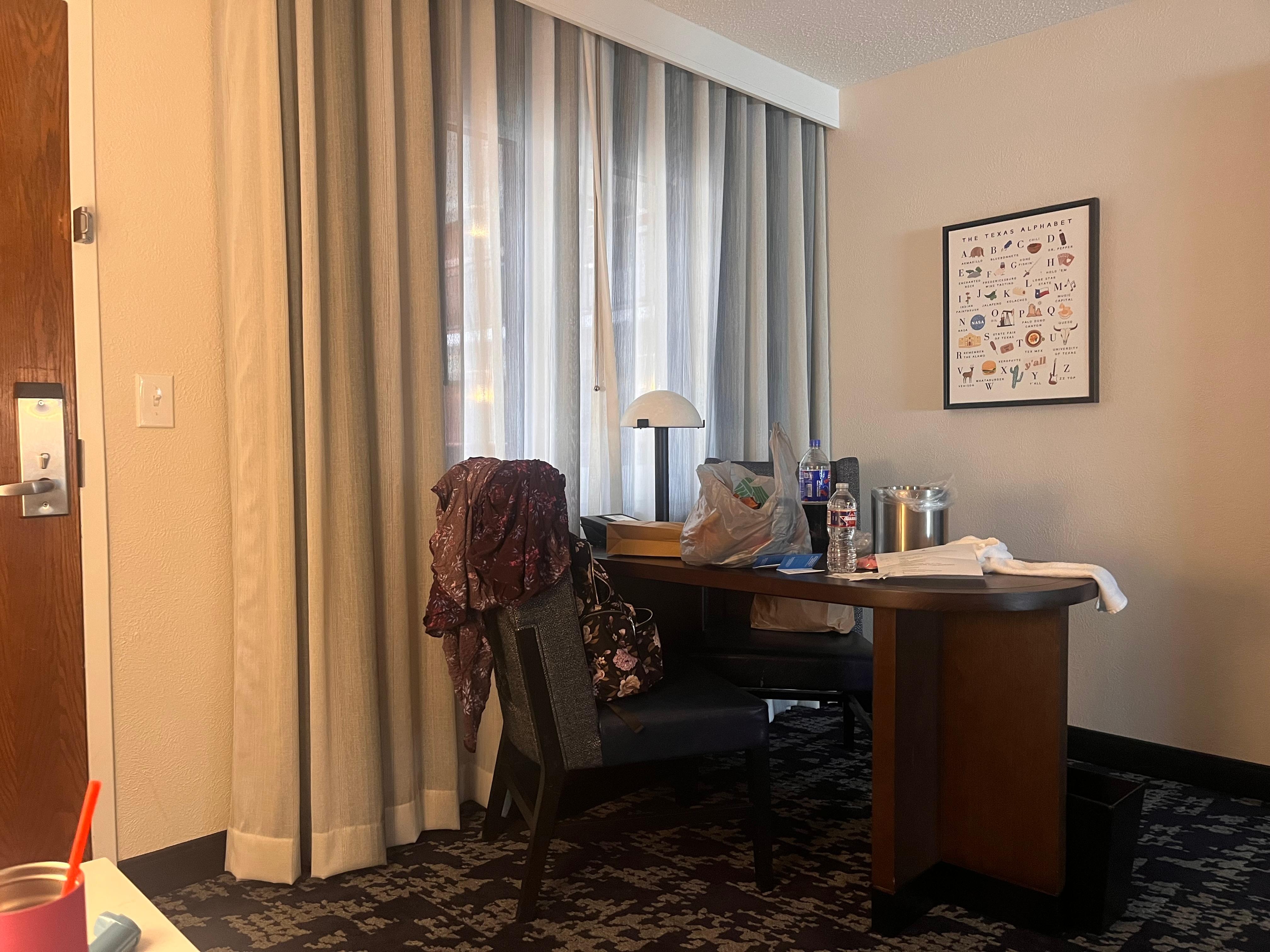 The room was clean and the bed was very comfortable. Breakfast was mediocre, but had the basics and was nice to have. The pool was pretty cold and there were never towels available. One thing that I was not pleased about was the fact we had to pay for parking each night. I am not sure if this is a common thing in Dallas, but at most hotels, parking is included. The battery to our door needed replaced and the maintenance guy was very prompt and friendly. Despite these small issues, would stay here again.