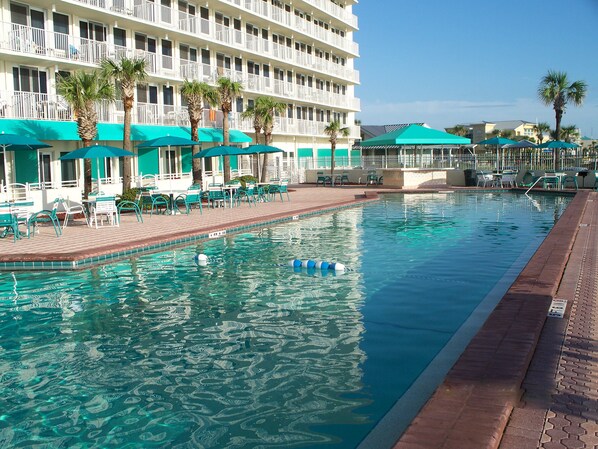Dit is Harbour Beach Resort, een acht verdiepingen tellend resort op de beste locatie op de strip, niet te dicht bij de drukte, maar dicht genoeg bij de pier en Ocean Walk om te lopen. Harbour Beach is een prachtige faciliteit en mist het lawaai en de ruwheid van andere 'resorts'. Het resort heeft onlangs een renovatie van een miljoen dollar voltooid.