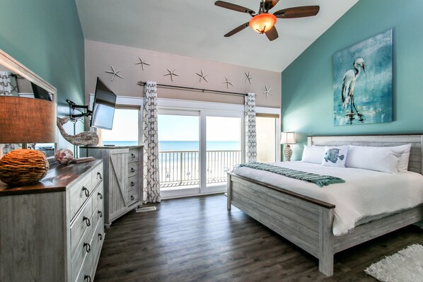 Nieuwe eigenaren Jim & Jennifer Fair willen ervoor zorgen dat je "Your Fair Share" krijgt, zodat ze hun meubels, vloeren, verf en inrichting hebben bijgewerkt en deze prachtige vakantie met je willen delen! Stijlvol en aan de kust, dit appartement beschikt over 2 slaapkamers en 2 badkamers. De bovenverdieping heeft een hemelbed met kingsize bed en een eigen balkon. De tweede slaapkamer, gelegen op de eerste verdieping, is ideaal voor kinderen, tieners of singles met een gloednieuwe twin boven een stapelbed. Elegante nieuwe lederen sofa's in de woonkamer bieden comfortabele zitplaatsen en een uitklapbaar tot een koningin slaper.