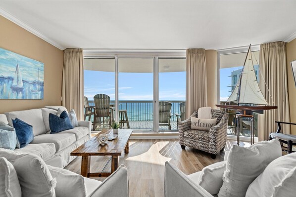 Luxe, golf front condominium biedt een prachtig uitzicht op kristalhelder water en wit strand zand. Net gerenoveerd en professioneel ingericht, dit apparaat heeft overal nieuw meubilair en bevat prachtig Engels antiek. De keuken is gerenoveerd en voorzien van granieten aanrecht en roestvrijstalen apparaten. Gelegen op de zevende verdieping, kan een ongelooflijk uitzicht worden genoten vanuit de woonkamer, eetkamer, master en gast slaapkamers. Master en kamers hebben kingsize bedden en de derde slaapkamer heeft 2 stapelbedden met 2 onderschuifbedden.