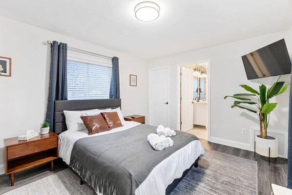 Enjoy high-speed WiFi, Amazon Fire smart TVs, a Keurig w/ French Roast coffee pods, Memory Foam beds, fresh linens, in-suite washer/dryer, Solimo bath products, and a fully-equipped kitchen. Message us for anything we can help with!