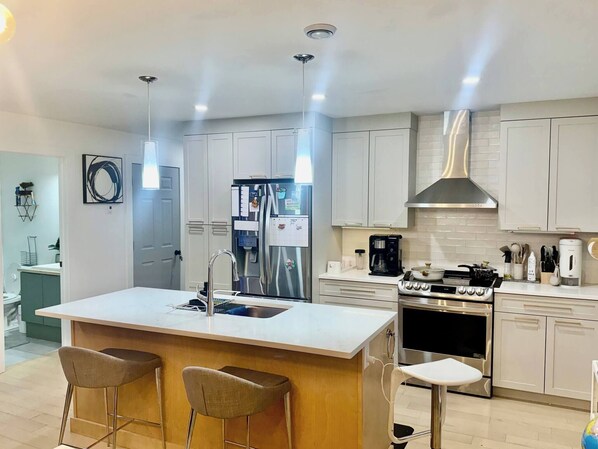 • Upstairs: 3 bedrooms + 2.5 bathrooms • Basement: 1 bedroom + 1 full bathroom Ideal for multi‑family trips, business teams, or guests needing privacy and space.