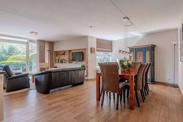 Park Loverendale 10 is a comfortable apartment that invites you to feel at home. With its modern decor and practical layout, it offers a lovely place to gather. The living room features a television and wifi connection to keep you connected. The kitchen and dining area are well-equipped with a coffee machine, kettle, microwave, oven, stove, and dishwasher. You'll find a spacious dining table for enjoying meals together. Three bedrooms provide ample sleeping space, while the two bathrooms are fully equipped, including towels and hot water. For added convenience, there’s a washing machine and iron. A highlight of this apartment is the balcony, perfect for sitting outside. Additionally, from 15 May until 15 September, you have access to a beach cabin at Strand 90, number 406. The main router in the meter cupboard is accessible to guests, and there's a repeater in the living room for a good connection. This apartment offers everything you need for a pleasant stay.
