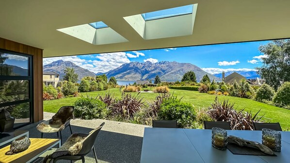 This 4 bedroom 4 bathroom modern architecturally designed house has been well thought out with great indoor and outdoor living areas and spacious bedrooms each with their own bathroom. With two outdoor dining and lounge areas both with overhead heaters you are spoilt for choice as to which view you wish to enjoy at any part of the day as well as being warm and dry no matter what the season. If that isn't enough the house also boasts an outdoor spa pool with views of the Remarkable Mountains.