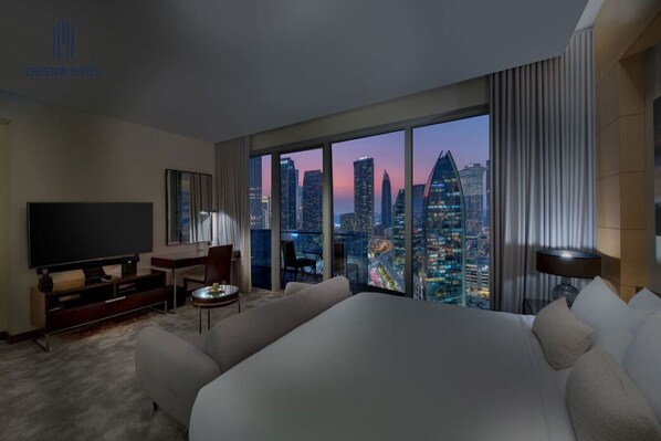 Cleverly appointed to make the most of the space, our Creston Studio includes working and seating areas, and a large bathroom with shower and bath. It offers a modern, well-equipped kitchenette with a fridge, microwave, and dining area. From your private balcony, you can enjoy breathtaking views over the city or Burj Khalifa.