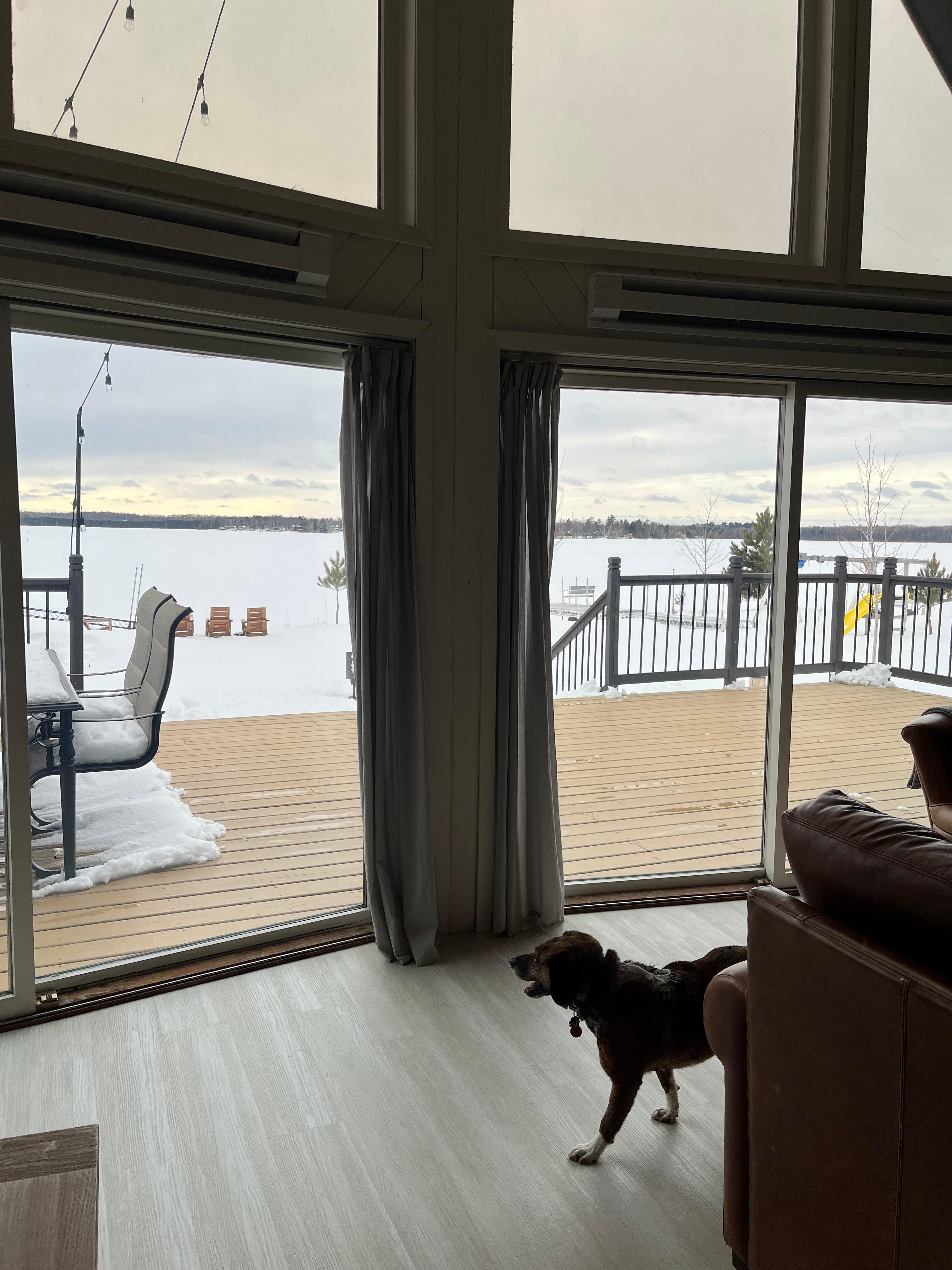 Beautiful lake to look out on. We appreciated it was dog friendly! We enjoyed the sauna and it was very close to good hiking. Comfy bed! We enjoyed our stay. It is very close to the neighbors on each side but we went while still cold out so we didn’t see anyone.