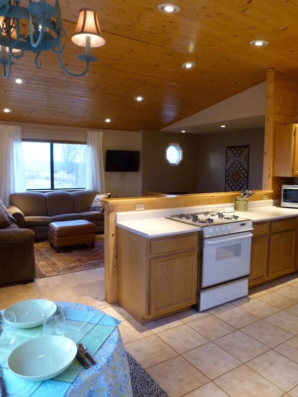 Het huis bevindt zich op de bovenverdieping van een duplex. Het heeft zijn eigen parkeerplaats, ingang en omheinde achtertuin met dubbele decks. Op Zon Mesa Farm hebben we paarden, een ezel, kippen, katten en een grote vriendelijke hond, die allemaal uit je eigen achtertuin zijn omheind!