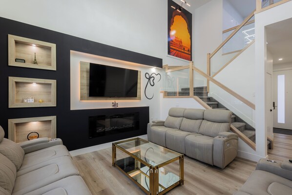 Entertainment: Kick back and relax in the spacious open to below living area featuring a large HDTV with Netflix access. Whether you are catching up on your favorite shows or enjoying a movie night with loved ones, the entertainment options are endless.