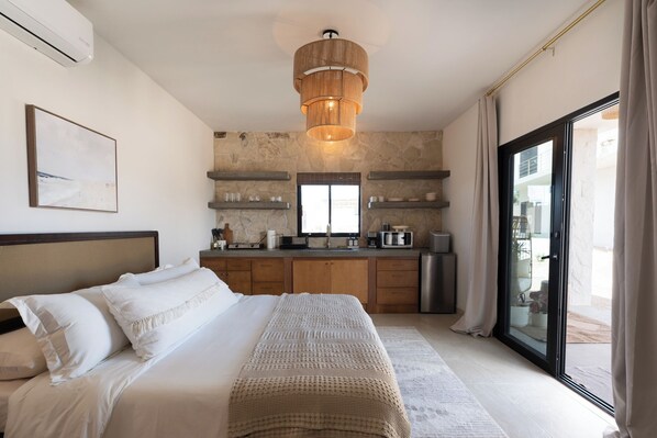 Guests can enjoy shared amenities such as a pool, sun loungers, outdoor shower, BBQ area, and peaceful, fully enclosed surroundings. Whether you're here for a quiet getaway or a longer stay, Casitas de Cerritos offers a laid-back and stylish retreat close to it all.
