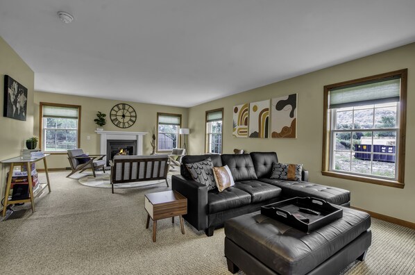 This home has been meticulously curated and maintained to make your stay comfortable and enjoyable. The downstairs consists of a spacious living room, a separate sitting room with mountain views, a half bath and a large chef's kitchen with glass doors that lead to an outdoor patio with fenced yard.