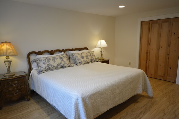 Het huis is ideaal voor een gelukkig koppel of groep van 6 personen of minder. De keuken en de grote modderruimte zijn boven met een wasmachine en droger. De keuken boven is ruim met een ronde tafel en een bar, die het scheidt van de bovenverdieping. Er zijn twee slaapkamers en die delen een complete badkamer. Een queen-kamer en een kamer met twee tweelingen.