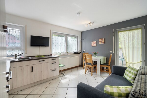 Gelegen in Endingen biedt vakantiewoning 2 alles wat jullie nodig hebben voor een ontspannen vakantie. De 43 m² grote accommodatie bestaat uit een woonkamer met slaapbank voor één persoon, een moderne inbouwkeuken met vaatwasser, een slaapkamer en een badkamer en biedt plaats aan maximaal 3 personen. Tot de voorzieningen behoren highspeed-wifi (geschikt voor videogesprekken), een tv, een wasmachine en een droger (tegen betaling beschikbaar). Op verzoek kan er een babybedje worden geplaatst. De vakantiewoning beschikt over een privé, omheind terras met zonnescherm, ideaal voor ontspannen avonden en zeer hondvriendelijk. Een parkeerplaats bevindt zich direct voor de woning. Fietsen kunnen veilig worden gestald in de fietsenkelder van het huis.