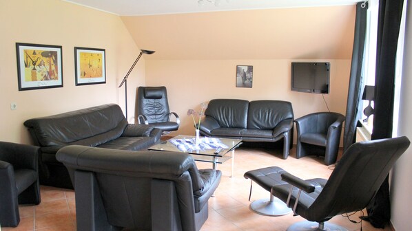 Uitgerust met centrale verwarming op gas, ingerichte keuken met magnetron, woonkamer met in totaal zes lcd-tv en stereo-installatie.