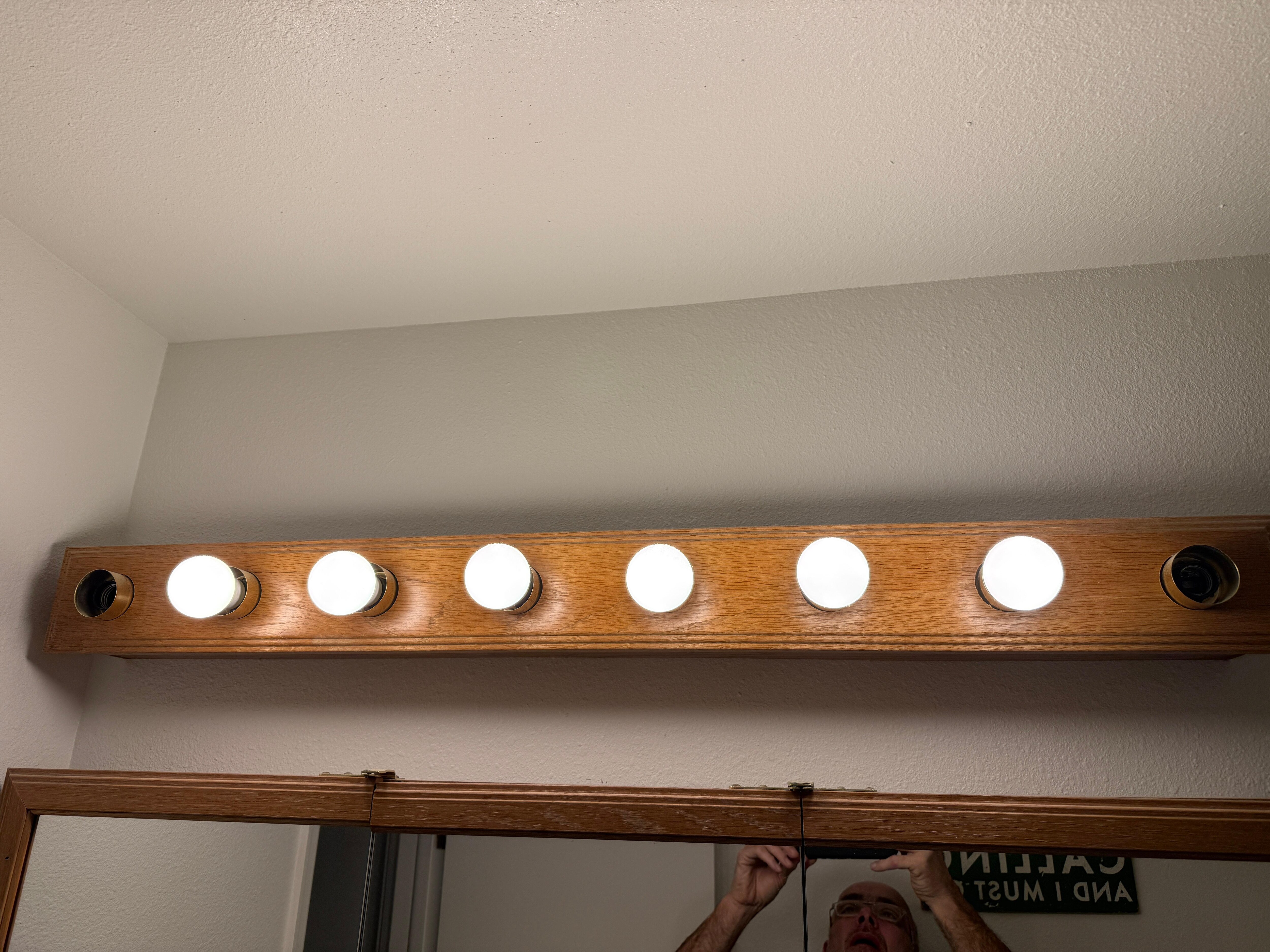 BATHROOM: The bathroom has a combo shower/tub with a water-saving showerhead that includes a hand shower. There is a large mirror and a clothes line to drip-dry clothes.