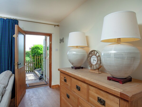 This is a two-bedroom holiday home with some beautiful character features throughout and showcases a wood burner, a large garden with a bar area and free parking.. 1 step to entrance.