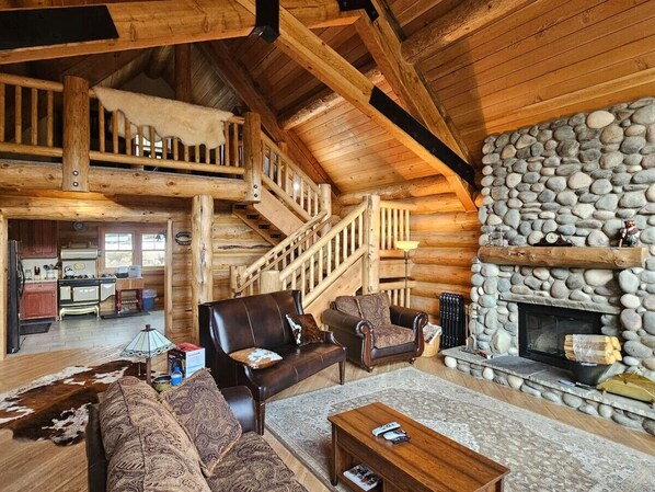 Lastly, the kitchen has a nice surprise with a 1930s replica stove that offers all modern amenities. These special features give you a true, old-timey log cabin experience.
