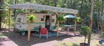 Super cute retro camper in the woods!