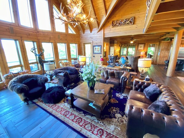 Verscholen tussen de Hemlocks bovenop Elk Ridge is een monumentale prestatie van Mountain Luxury. Met meer dan 6.000 vierkante meter aan verwarmde leefruimte is de enorme omvang van Bliss Mountain Lodge net zo indrukwekkend als de fijne afspraken, exclusief Amerikaans vervaardigd vakmanschap en themaparkachtige sfeer. Genesteld in 15 hectare privacy met Moeder Natuur als uw enige directe buur. Geniet van een vakantie op het hoogste niveau van luxe in Bliss Mountain Lodge, een ervaring in een klasse helemaal vanzelf. Bliss Mountain Lodge is een prachtig huis genesteld in het midden van Leatherwood Mountains Resort, een gated vakantieoord met paardrijden, restaurant en bar, tubing, fietsen, mijlen van paden en beken, vliegvissen, bruiloft en zakelijke retraites, familiebijeenkomsten en veel meer.