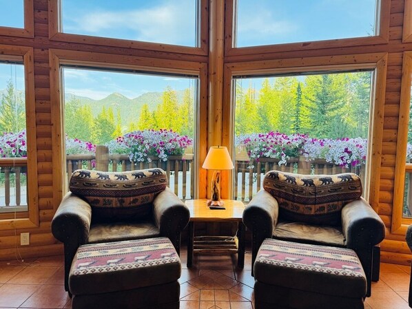 - Enjoy the cozy gas fireplace with scenic views from the spacious living room.
