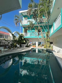 The pool deck is worn and the pool area is in a cramped space by US standards, but excellent by Central American standards.