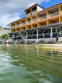When visiting a new town in a foreign country we usually book only 1-2 nights at a hotel to try it out before booking more nights or moving on. We were happy to extend this stay from 2 nights to 5 after sleeping here 2 nights. The room on the 3rd floor lakeside was clean, had beautiful views, sunny, had air conditioning, hot water, daily housekeeping, blackout blinds, decent wi-fi, and free bottled water & shampoo. Staff were friendly enough. The restaurant offers several of their breakfast entrees free with the room and other choices are available for ~Q50-60.