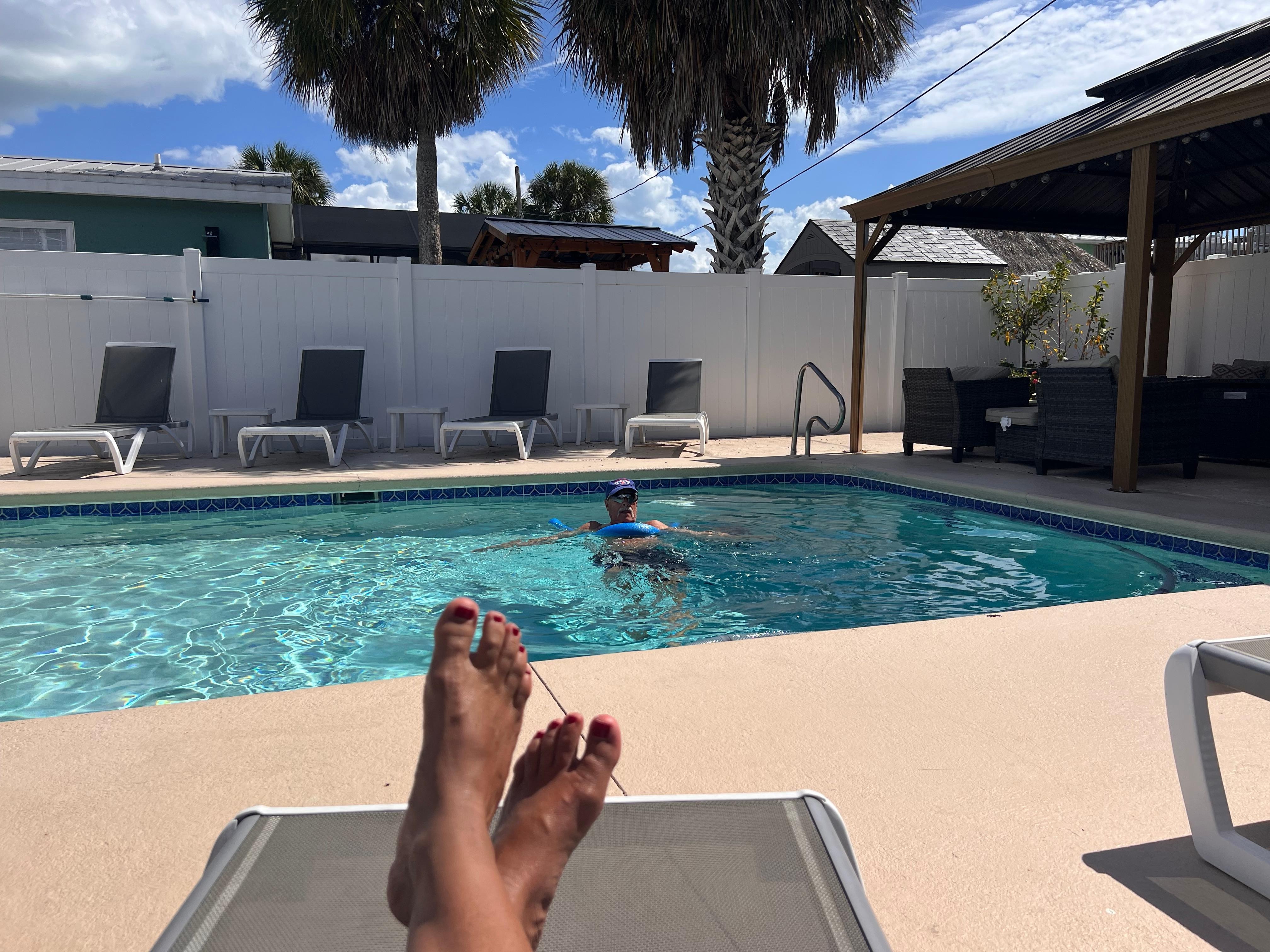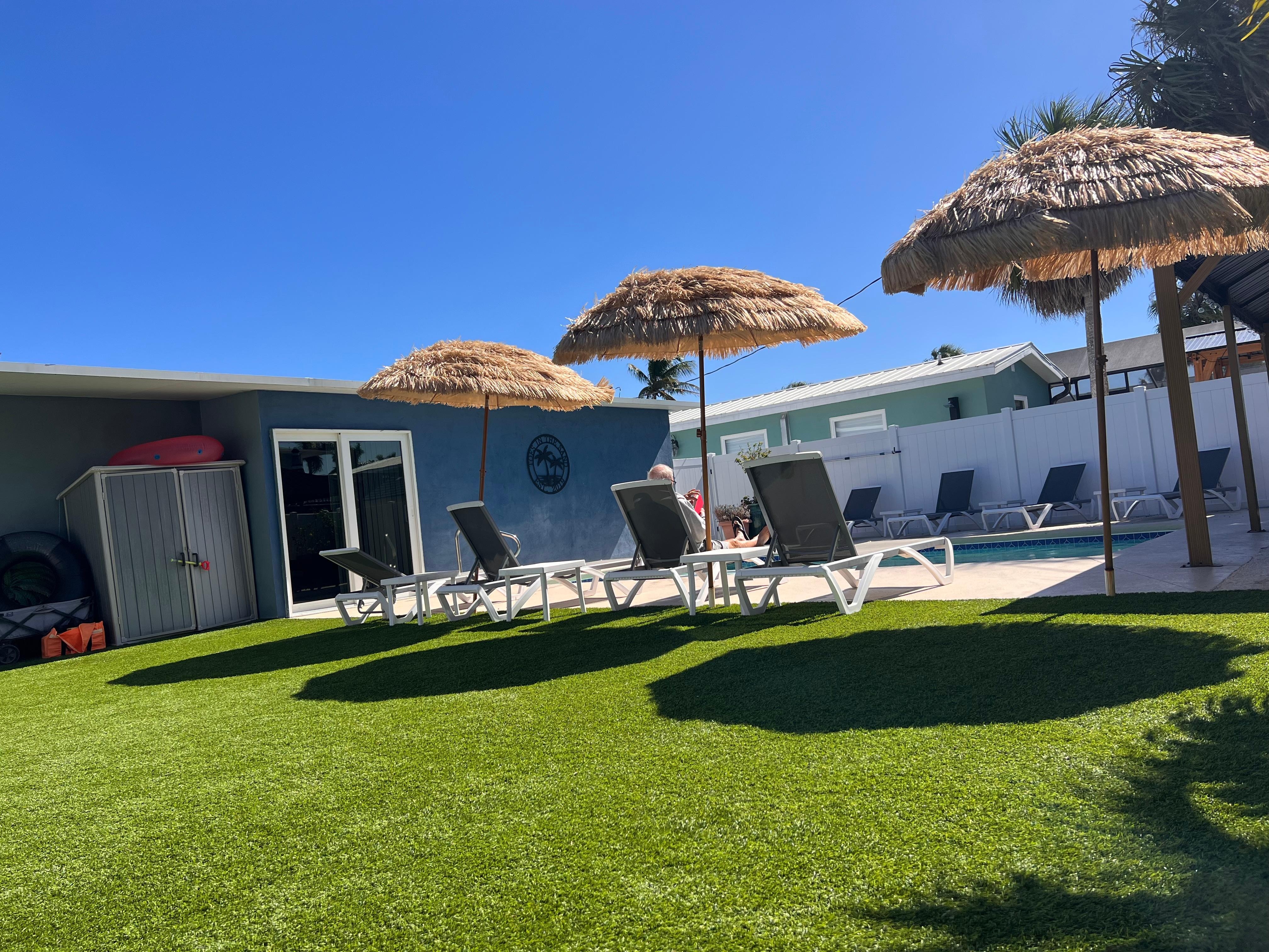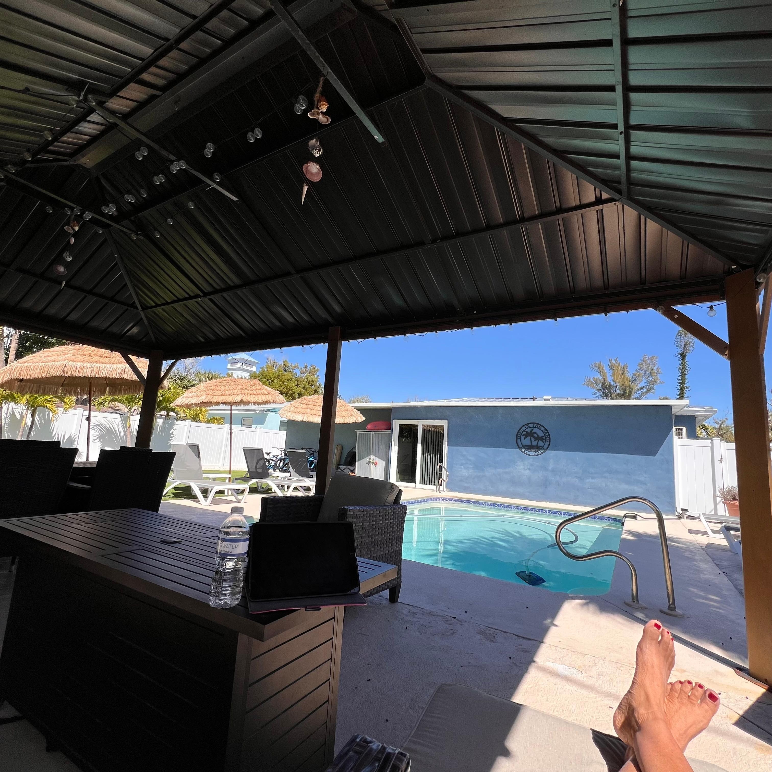 Outside, you'll find our own private oasis- a sparkling heated, salt water swimming pool and gazebo that includes lighting, a propane fire-pit table and plenty of seating. You can soak up the Florida sunshine in privacy on the loungers. Feel free to fire up the grill and barbecue or simply enjoy a refreshing dip to beat the heat.