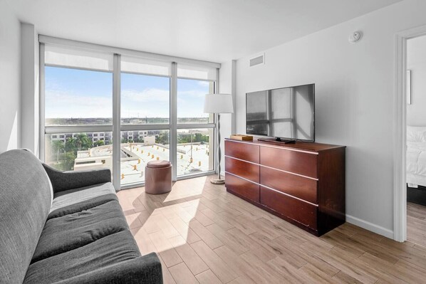 Make yourself at home! You will have full private access to the entire apartment. 🛋️ Additionally, you can enjoy the complex`s amazing amenities, including a spectacular resort-style pool surrounded by palm trees to relax under the Florida sun ☀️ and secure on-site parking for your total peace of mind. 🚗🏊♂️