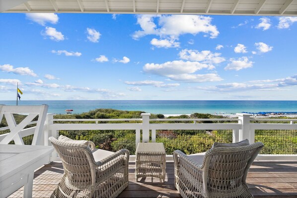 Had a wonderful week at this property. The location can't be beat and gulf views from the kitchen/living area are fantastic. The property comes with four designated chairs at the beach, which is a big advantage for the 30A area.