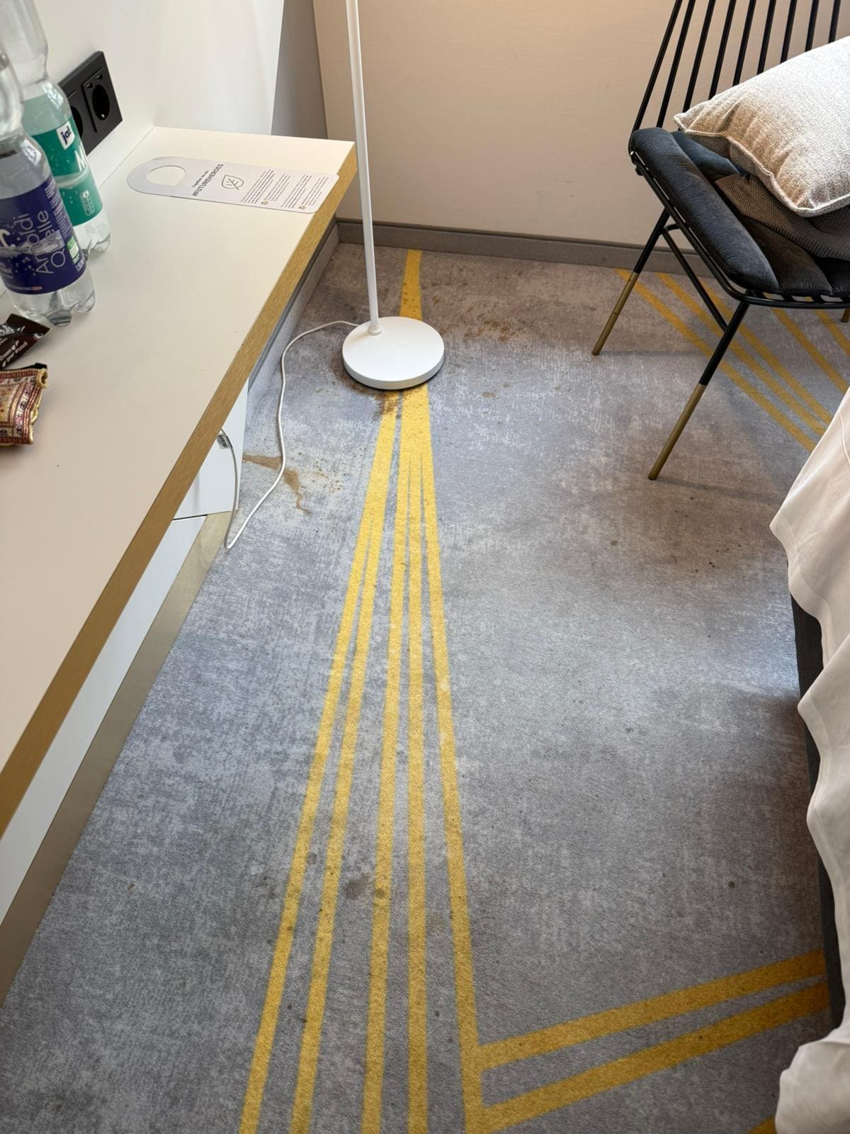 Da ich spätabends von einer Veranstaltung zurückkam, habe ich auf eine Reklamation an der Rezeption verzichtet. Ich habe mir stattdessen selbst geholfen: Die Bettwäsche wurde mit Bodyspray aufgefrischt, und glücklicherweise hatte ich ein eigenes Handtuch dabei.