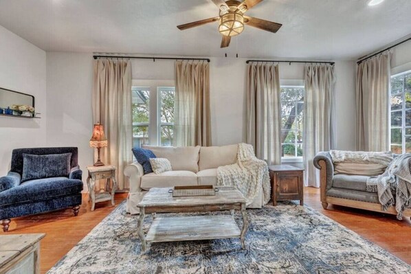 Perfect mixture of traditional charm and modern and comfortable convenience. We made a wonderful Thanksgiving meal in the spacious kitchen, and we enjoyed it in the cozy living room. Saw an abundance of deer, enjoyed the hot tub, and we were minutes away from HEB and Main Street.