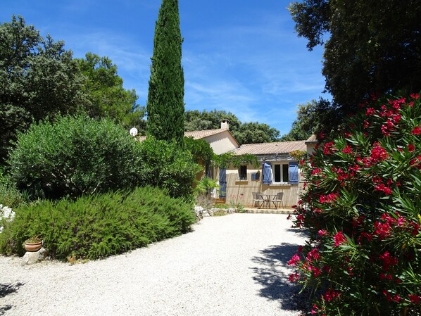 Beschermd tegen de koude mistral door de heuvels in het noorden, is het huis gelegen samen met een aparte studio voor maximaal zes personen in een grote, goed onderhouden tuin op het zuiden (1200 m2). De steeneiken bieden schaduw wanneer de hitte hoog is en op het beschutte terras kunt u ontspannen, zelfs op minder warme dagen.