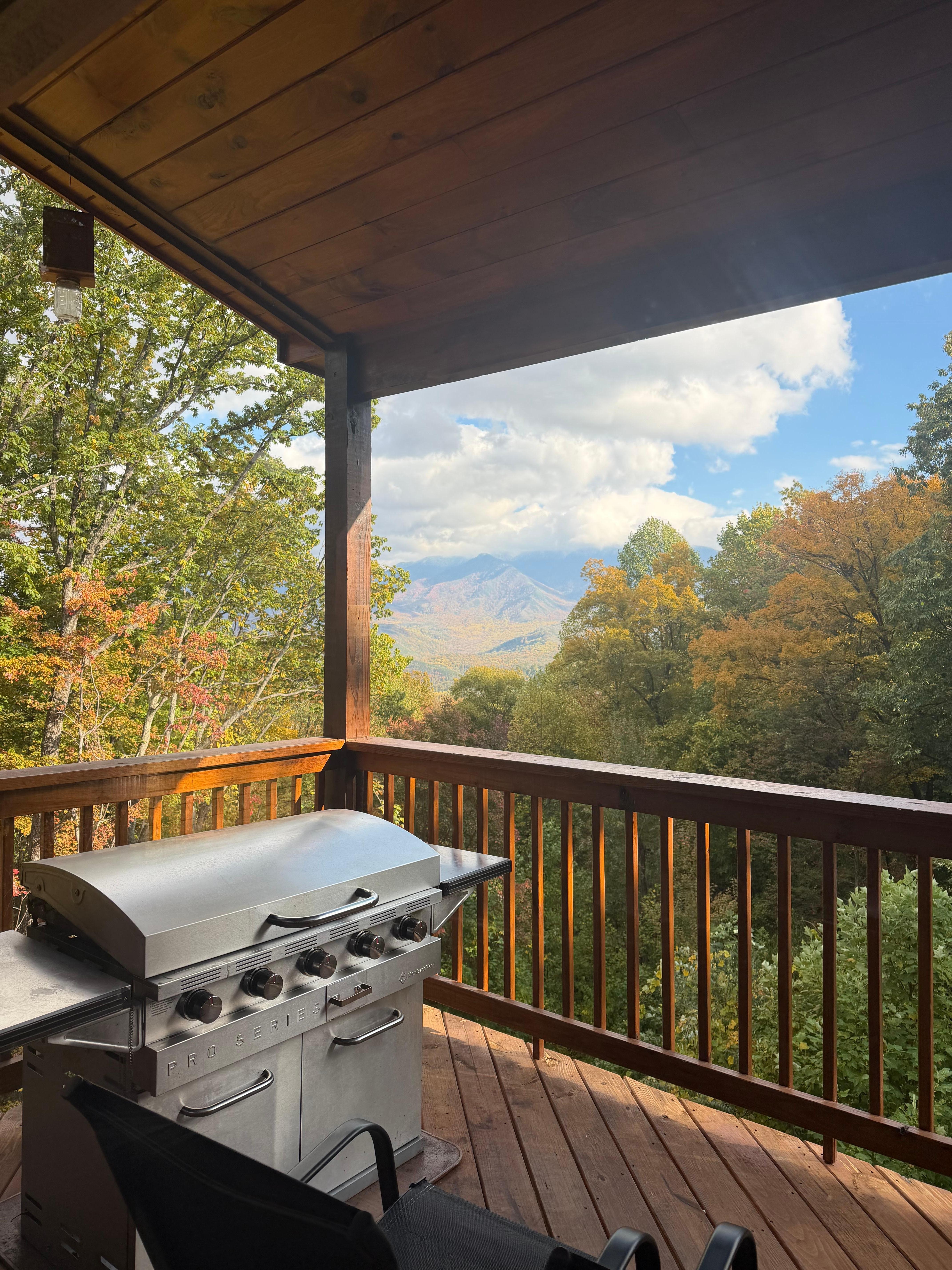 We LOVED this cabin. The view is stunning and the entire cabin exceeded our expectations. We were welcomed by the neighborhood black bear within 30 minutes of arriving to the property, which was very exciting for all. A few things to mention. There are 3 different floors, so quite a bit of stairs if you are bringing any elderly family members. The kitchen is well equipped for cooking, the grill is a blackstone type griddle we used for steaks the first night and breakfasts. If you are lucky the clouds will clear to catch the most amazing sunrise over the mountains! It is less than a mile from Ober Gatlinburg and only took 5 minutes to get to the parking lot. We spent the day there and took the tram down to Gatlinburg for a late lunch at Calhouns. The Chalet Village Market is only a 5 minute drive down the mountain and has anything you may have forgotten to bring with you. I would suggest providing plastic drinkware to be used in when in the hot tub. Overall we loved this property and will return!