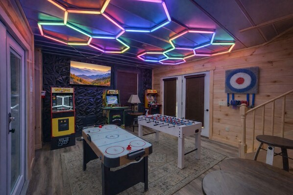 * Game room with arcade-style games