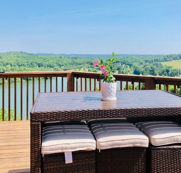 De slaapkamer heeft een kingsize bed suite. De hoofdslaapkamer heeft een 50 inch smart-tv, de hoofdbadkamer heeft een bubbelbad en een aparte grote inloopdouche. De dubbele ijdelheid heeft een kwarts aanrecht. De andere twee grote slaapkamers hebben queensize bedden met 48 inch smart-tv's. De badkamer op de begane grond heeft een inloopdouche. Het hoofdniveau heeft een groot terras met een overdekte veranda en een bubbelbad. U kunt genieten van prachtige zonsondergangen over het Douglas-meer terwijl u geniet van de hot tub. Het grote dek heeft ook een propaan / houtskoolgrill.