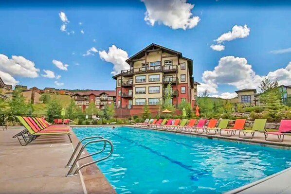 After a day on the mountain, you can enjoy a relaxing night in this spacious condo in front of the gas fireplace. Make a wonderful meal in the fully-equipped kitchen and then cuddle up on the couch for a movie. There is a king-size bed in the main bedroom, a king in the second bedroom, a queen in the third bedroom, and a twin in the living room. The living space includes a 55-inch flatscreen TV with a Blu-ray player and STARZ, Showtime, and HBO streaming in the living room, plus a 40-inch flatscreen TV and Blu-ray player in each bedroom. You'll also have a private washer/dryer, a full kitchen, a gas fireplace, Free WiFi, and valley and pool views. The complex enjoys ski-in/ski-out access, a complimentary ski locker, wireless internet in the common area, and an outdoor heated pool and hot tub (open seasonally throughout the year).