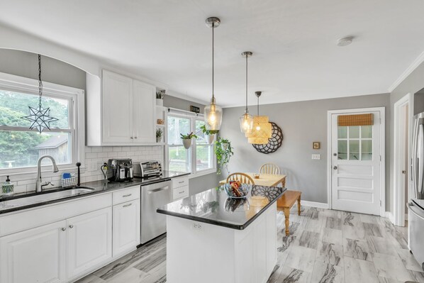 Prepare delicious meals in the fully-equipped kitchen, which includes all the essentials for cooking and baking. Whether you're whipping up a quick breakfast or hosting a family dinner, this kitchen has you covered.
