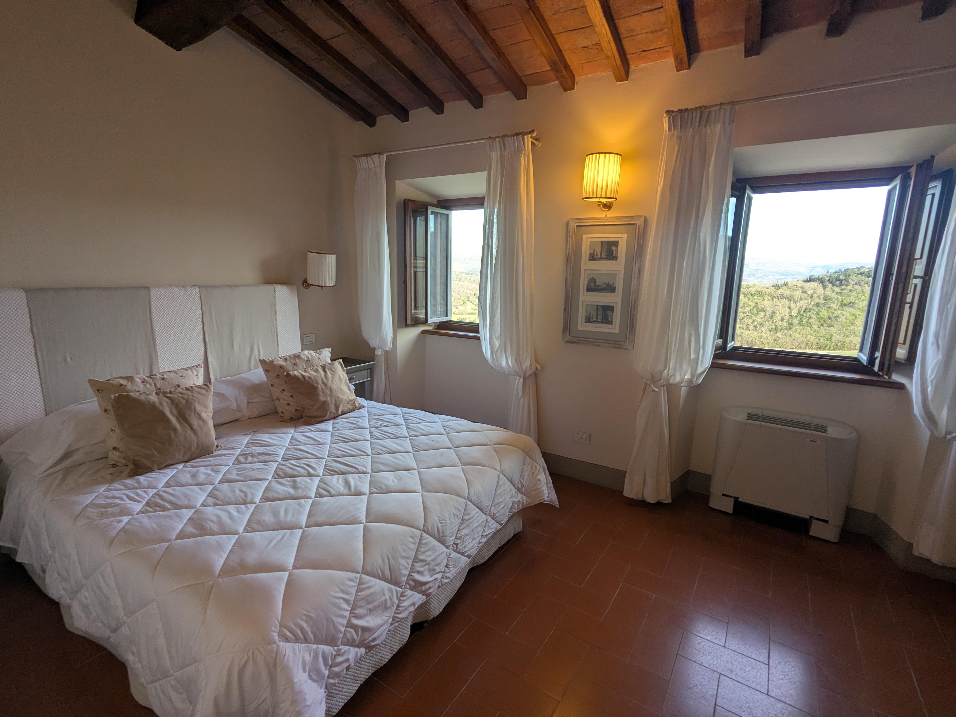 Prachtige locatie, prachtige omgeving en verblijf. Een quasie heel verdiep neemt de kamer in beslag. Ons eigen kasteel! Enkel de bedden zijn iets te hard om comfortabel te slapen.