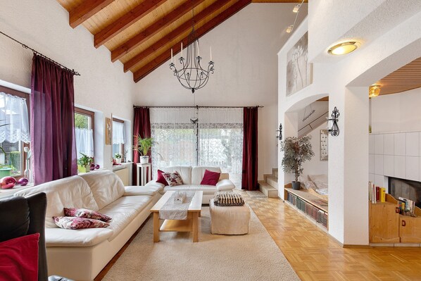 Het 150 m² grote vakantiehuis in Gückingen biedt plaats aan maximaal 6 gasten met 3 slaapkamers en een woonkamer. Er is 1 badkamer en een volledig uitgeruste keuken voor jullie comfort. Tot de voorzieningen behoren snelle wifi (geschikt voor video), tv, werkplek, koffiemachine, wasmachine, droger, babybed en kinderstoel. Een eigen balkon en 2 overdekte terrassen nodigen uit tot gezellige avonden – geniet van zonsopgang en zonsondergang.