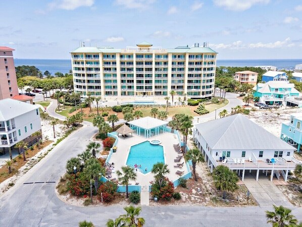 Deze woning ligt schuin tegenover het zwembad en het bubbelbad. ShellChase biedt overdekte carportparking voor drie voertuigen. Toegang tot het zandstrand van de Golf ligt op korte loopafstand van het voordek, terwijl Mobile Bay, een jachthaven en een restaurant een beetje verder lopen naar het noorden.