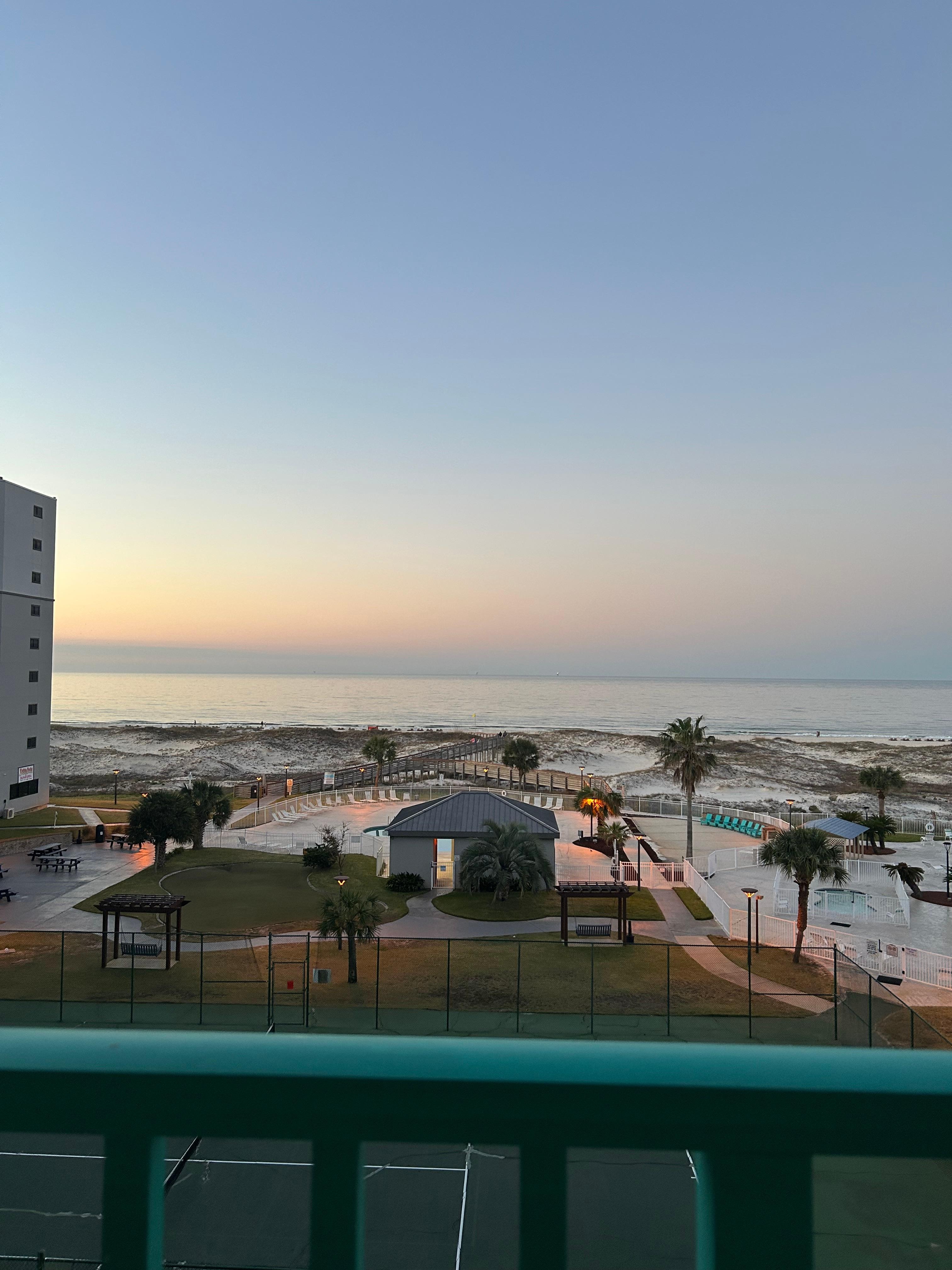 This was our 1st time at Gulf Shores and we are so glad we stayed here. It was close enough to get to everything in the city but far enough out that the traffic wasn’t bad and the beach wasn’t too crowded. The condo was great, clean, had everything we needed in the kitchen, & everything worked properly. The only thing I’d say that could be changed is having a lounger of some sort on the patio and the outdoor hot tub being open during the summer. The indoor hot tub was a big no for us. It was in a closed room with no windows so basically a room of boiling chlorine. The gym had everything we needed. We will definitely be staying here again.